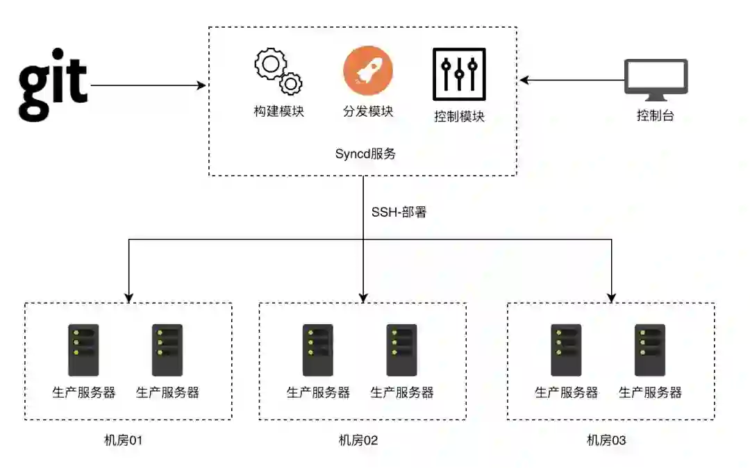 Syncd服务通过git-ssh(或password)方式从仓库中拉取指定tag(分支)代码.