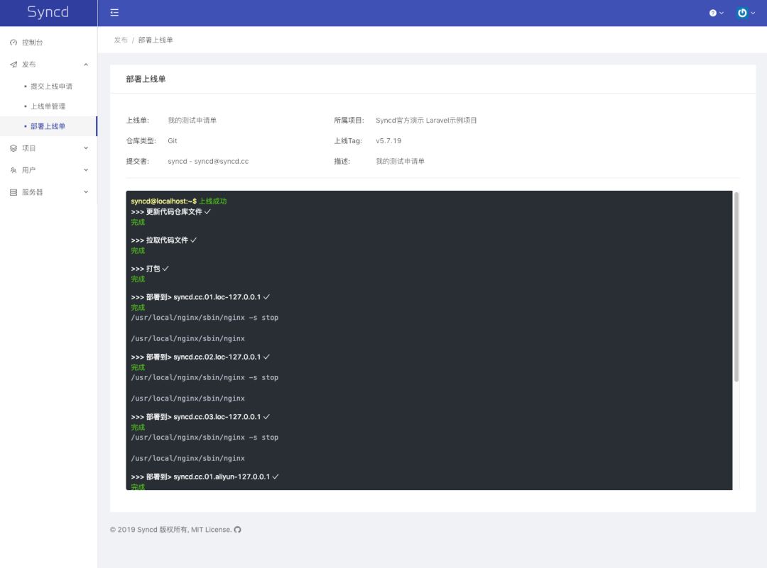 打开浏览器,访问 http://deploy.syncd.cc