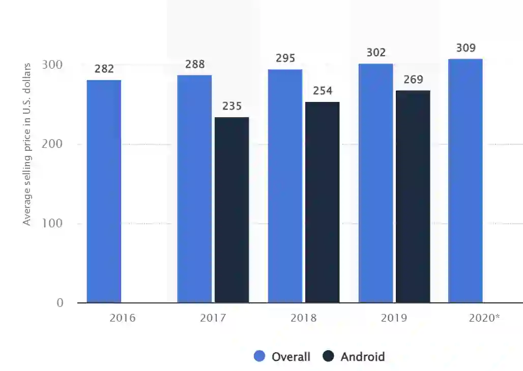 根据Counterpoint数据,2021年全球智能手机均价达到了322美元(约合人民币2046元),同比增幅达到了4%,达到了历史最高水平。