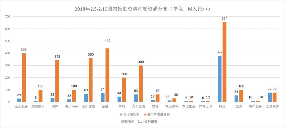 剔除大额融资事件、未披露金额事件,本周各领域平均融资额及领域内最大单笔融资额分布情况如下图所示。