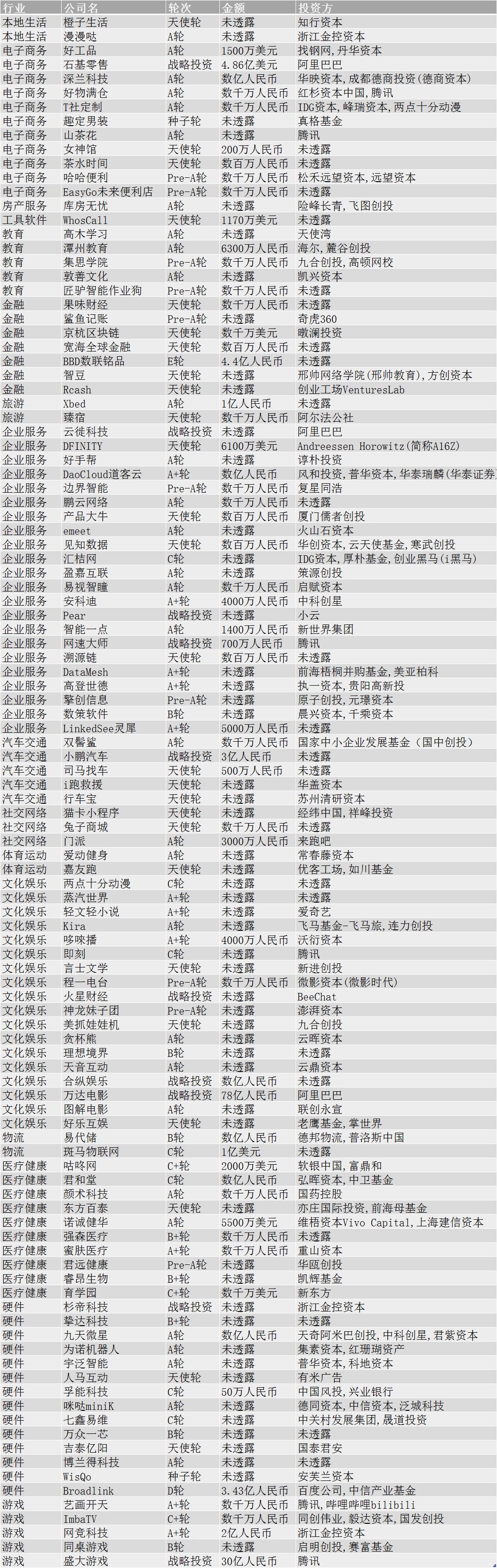 企业服务22起融资事件中IT基础设施领域发生6起。产业互联网+创新孵化服务、企业级互联网架构服务、大数据及云技术服务提供商“云徙科技”获未透露金额的战略融资,投资方为阿里巴巴;开源分布式区块链计算系统研发商“DFINITY”获6100万美元的天使轮融资,投资方为Andreessen Horowitz(简称A16Z);一站式企业人力服务平台“好手帮”获未透露金额的A轮融资,投资方为谆朴投资;云计算创业公司“DaoCloud道客云”获数亿人民币的A+轮融资,投资方为风和投资,普华资本,华泰瑞麟(华泰证券),中恒星光金融控股;分布式智能分析系统公司“边界智能”获数千万人民币的Pre-A轮融资,投资方为复星同浩;云储存系统研发商“鹏云网络”获数千万人民币的A轮融资,投资方未透露。