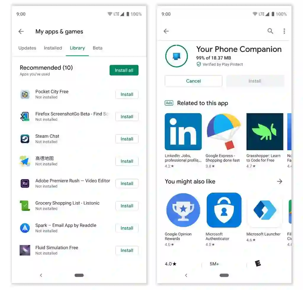 目前唯一的问题在于,尽管同样适配了新设计风格,Play 应用商店仍然是 Google 应用中为数不多的、尚未适配暗色模式的应用。