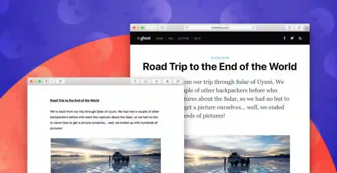 除了方便的创建方式,让我换到 Flotato 的更重要的原因是它的「性能」。这里以我之前用的 Fluid 为例,通过 Fluid 和 Flotato 创建同一个网站的本地应用之后,在浏览文章时能够明显对比出 Fluid 的滚动体验更不「跟手」,Flotato 不论是在动效还是操作方面都会更为流畅。