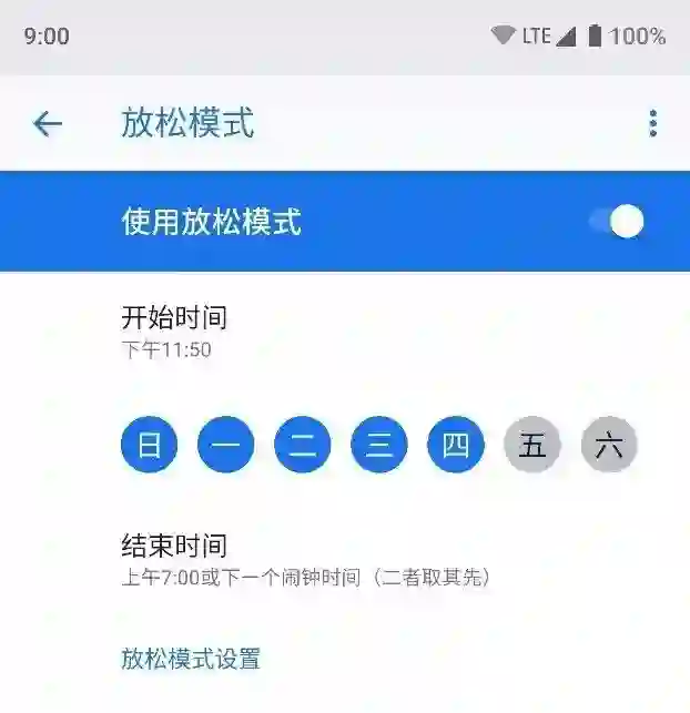 数字健康(Android):数字健康应用上周更新,为放松模式(Wind Down)增加了按日期自动开启的规则设定方式。
