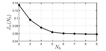 图9.不同Nh值的交叉验证错误。使用5个以上的逻辑回归分类器并不能显著提高性能。