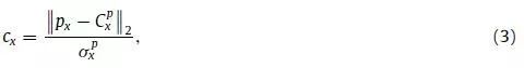 px表示通过Kq得到的wx的3D位置,同时存在的SVHV Qy只有在欧几里德距离小于标准差的2倍(rc=2.0)时才会与wx更新。公式(2)和(3)负责检测相邻查询VWs的组,这些组同时是一个公共数据库SVHV的成员。最后,利用余弦相似度评分: