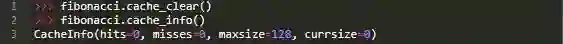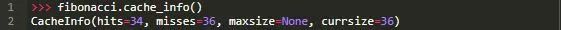 再一次,正如你在CacheInfo输出中看到的那样,Python的lru_cache()记住了递归调用fibonacci()。当我们查看memoized函数的缓存信息时,您会发现为什么它在第一次运行时比我们的版本更快——缓存命中了34次。