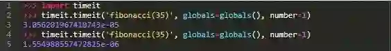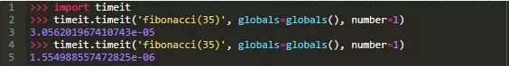 我再一次使用该timeit模块来运行一个简单的基准测试,以便了解这种优化对性能的影响: