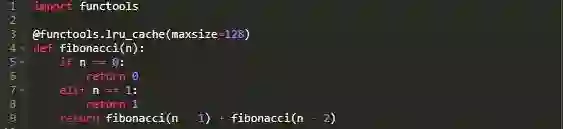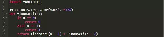 我们再来看看我们的斐波那契数列示例。这一次,我会告诉你如何使用functools.lru_cache装饰器添加记忆: