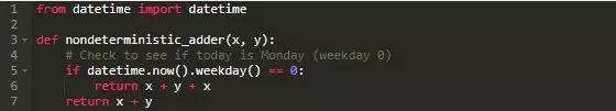 这deterministic_adder()是一个确定性函数,因为它总是会为相同的一对参数返回相同的结果。例如,如果您将2和3传入该函数,它将始终返回5。