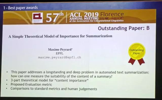 ACL2019最佳论文出炉,共八篇文章获奖。来自中科院、华为诺亚方舟实验室等机构的论文获得了最佳长论文;一篇来自南京理工大学论文获得了杰出论文奖。除此之外,还有很多华人学者都是获奖论文的作者。由此可见,国内研究者在 NLP 领域还是取得非常不错的成绩。