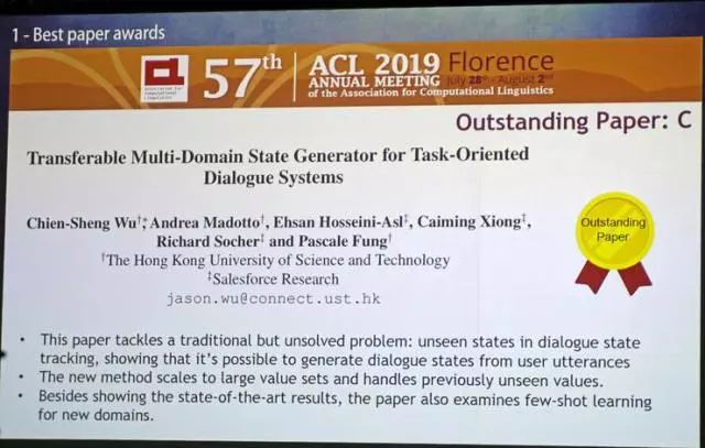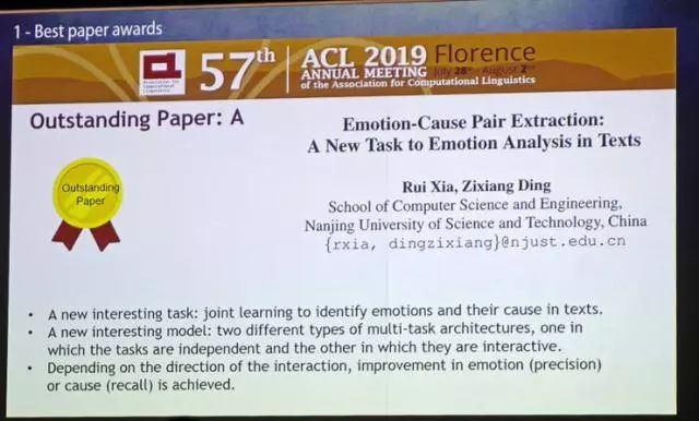 南京理工大学夏睿团队和港科大的 Pascale Fung 团队分别获得了杰出论文奖。