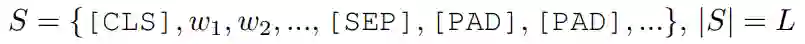 文本输入采用常规做法,使用 WordPiece 切分原始输入文本,之后添加 [CLS] 和 [SEP] 标记,并用 [PAD] 补齐长度得到文本输入序列: