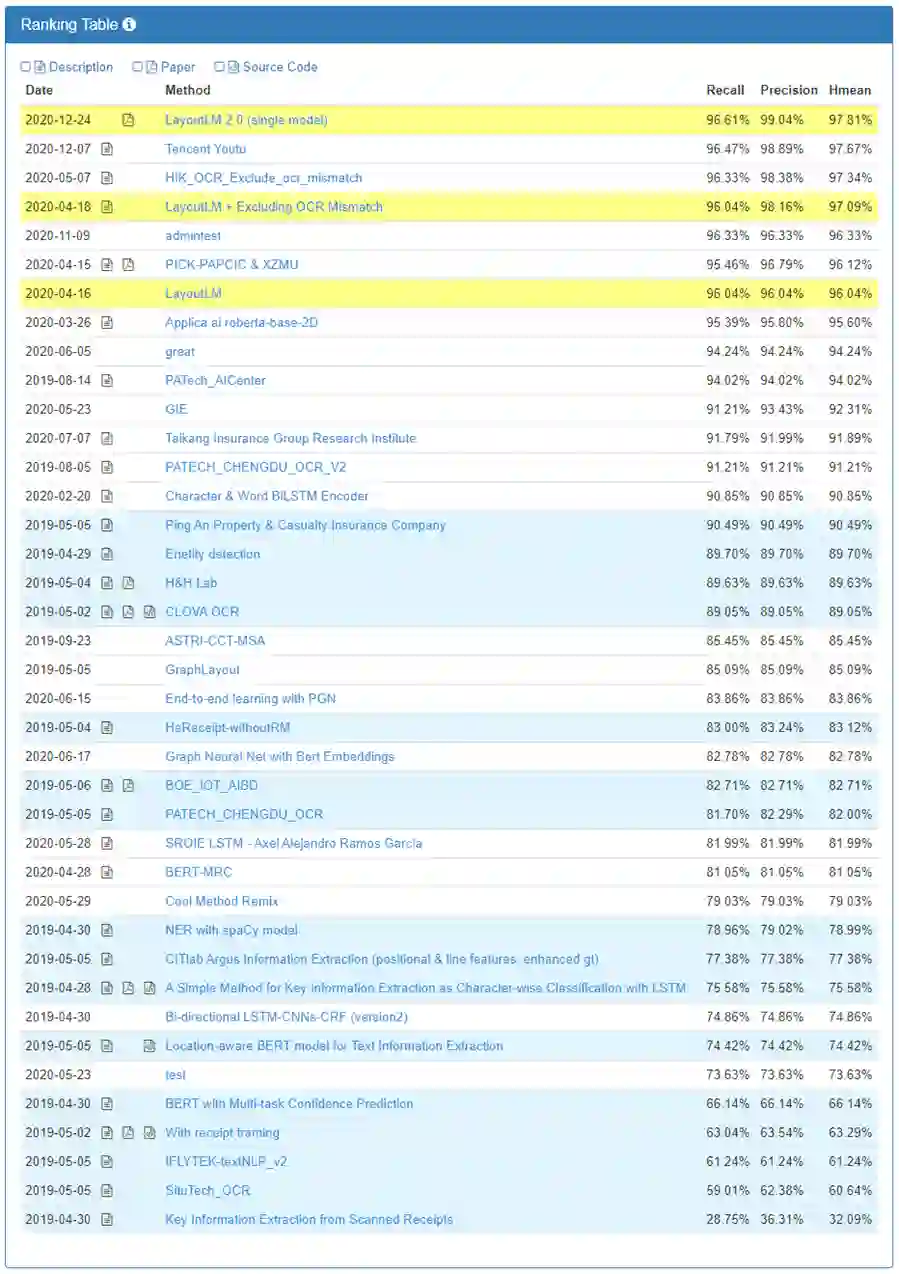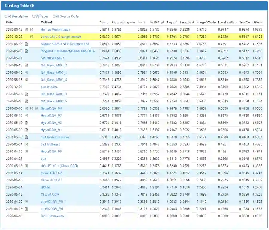 编者按:近年来,预训练模型是深度学习领域中被广泛应用的一项技术,对于自然语言处理和计算机视觉等领域的发展影响深远。2020年初,微软亚洲研究院的研究人员提出并开源了通用文档理解预训练模型 LayoutLM 1.0,受到了广泛关注和认可。如今,研究人员又提出了新一代的文档理解预训练模型 LayoutLM 2.0,该模型在一系列文档理解任务中都表现出色,并在多项任务中取得了新的突破,登顶 SROIE 和 DocVQA 两项文档理解任务的排行榜(Leaderboard)。未来,以多模态预训练为代表的智能文档理解技术将在更多的实际应用场景中扮演更为重要的角色。