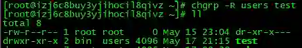 chgrp -R users test 改变test文件夹及其所有子文件(夹)的群组为users。