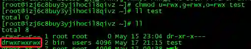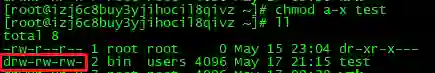 备注:执行权限(x),对目录而已就是其他用户能否cd test成为工作目录。