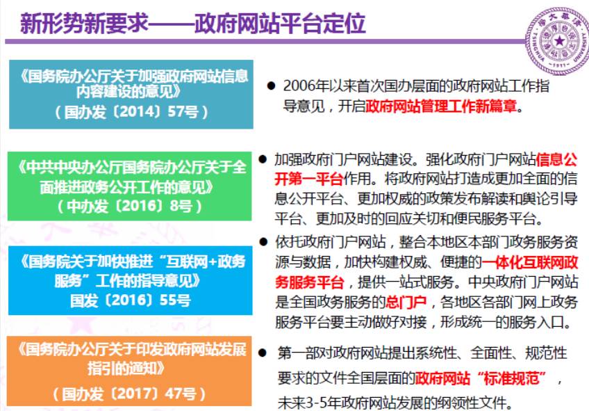为此国务院办公厅从2014年至今颁布一系列政策对政府网站建设和维护进行规范和指导。