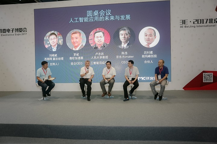 在主题为“人工智能应用的未来与发展”的圆桌论坛中,在西部网副总经理刘晓斌的主持下,微软加速器驻企CEO罗斌,人工智能顶级专家、人民大学卢志武教授、京东方imaker CEO陈浩和朗玛峰创投合伙人吕钊建等嘉宾进行了深入的探讨。