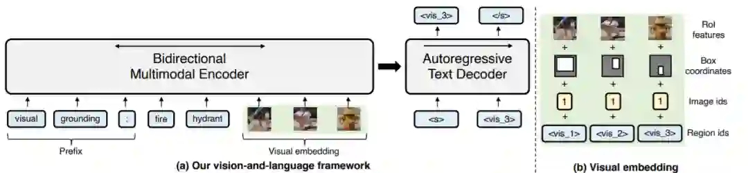 Grounded captioning: 与上一个任务相反,输入图片和一个object的visual token,输出对这个object的描述。