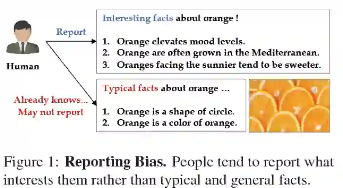 目前的大规模语言模型在理解日常物品属性方面的能力还很缺乏,因为它们的预训练语料中很少有这样的事实性知识,即所谓的reporting bias,下图即是一个例子:
