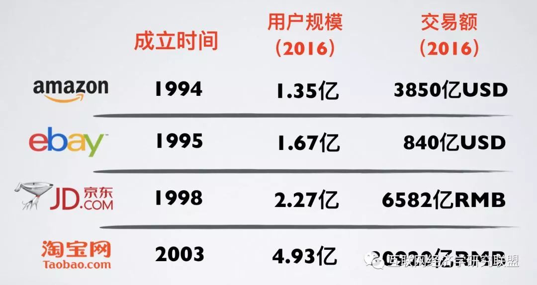 2016年网络购物市场中,亚马逊拥有1.35亿用户,交易额3 850亿美元,Ebay拥有1.67亿用户,交易额840亿美元,同期京东拥有用户2.27亿,交易额6 582亿美元,淘宝网拥有4.93亿用户,交易额30 920亿美元;网约车市场中,优步的年订单为20亿,滴滴则有70亿;互联网支付市场中,PayPal拥有用户1.97亿,交易额3 450亿美元,支付宝拥有用户6亿,交易额达30 000亿美元;互联网通信市场中,MSN与ICQ已经退出市场,而QQ与微信则分别拥有8.61亿与9.38亿活跃用户。在这些数据的对比中可以发现,国内互联网平台企业已经成为各自行业的主导者,在体量上占据着绝对的优势。