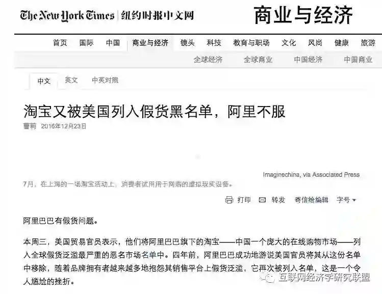 但无论匹配机制与算法是什么,当存在竞价行为和用户之间的认知鸿沟时,在逐利性的驱使下非中立平台将难以避免“劣币现象”的发生。这一问题一直困扰着国内最大的C2C平台淘宝,在美国贸易代表署2016年发布的“负面市场”清单中,淘宝网(taobao.com)因假货治理问题再次被列入其中。