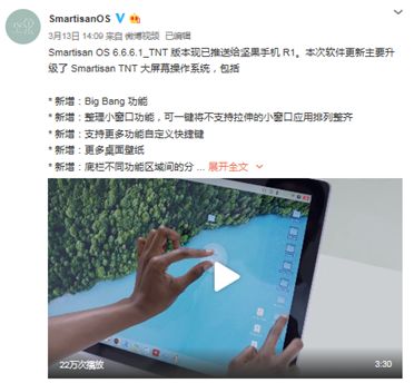 此外,SmartisanOS昨天发布微博回顾了SmartisanOS的发展过程。