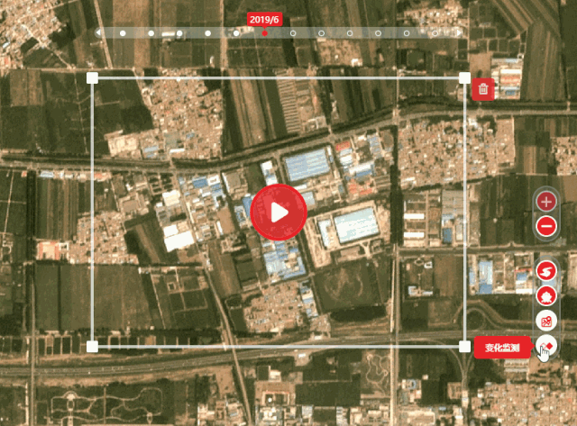 并且,SenseEarth平台上的卫星影像数据(北京和上海地区),是以每个月为周期高频更新。用户可以按月来对比目标区域在不同时段遥感影像的变化情况,同时SenseEarth还会自动将变化图斑呈现出来,直观展示。
