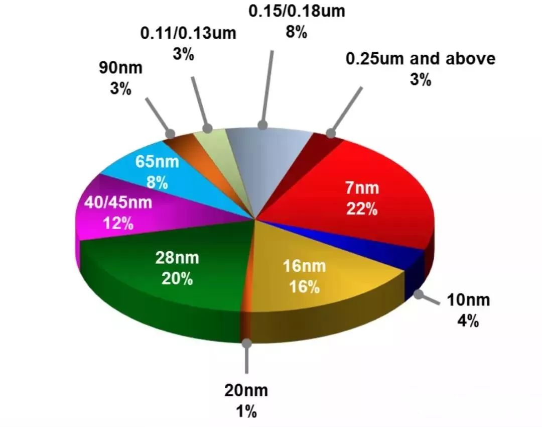 在近代工艺的发展历史上,7nm绝对是最受关注的工艺水平之一,很多在10nm工艺上大放异彩的半导体公司都在7nm上吃了苦头,Intel也不例外。也因此,台积电借势一举打下了大半市场,完成了自己从追随者到引领者的身份蜕变,树立了自己的定位,拿下了高通、华为等多家主流手机公司的大单。发展至今,7nm工艺给台积电带来的营收都依然占据很大比例,如2019 Q1财报显示,台积电7nm工艺营收占据整个公司营收的22%,占比最高。