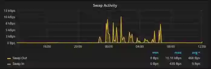 如图所示,如果你看到有大于 1MB 每秒的持续交换活动的话,您就需要减少缓冲池的大小了,或者使用其他的内存。