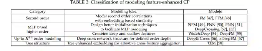 本次综述的组织结构如下。在第2节中,我们将回顾使用ID和交互历史进行建模的协同过滤模型。在第3节中,我们回顾了将用户和商品的侧面信息整合到推荐中的模型,如用户简介和社交网络、商品属性和知识图谱。我们将它们称为内容丰富的模型,它通过集成侧信息自然地扩展了CF。在第4节中,我们将回顾解释上下文信息的模型。上下文数据与每个用户-项目交互相关联,例如时间、位置和过去的交互序列。上下文感知模型基于上下文数据进行预测。由于页面限制,我们主要关注时间信息,这是最常见的上下文数据之一。最后,对研究结果进行了总结,并提出了展望。
