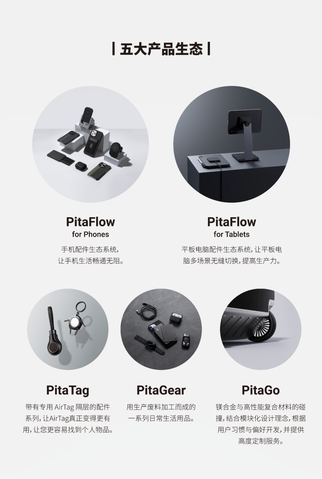 同时期,行业所有的配件基本以单品推出,用户在购买不同的配件单品时,还需考虑配件之间的兼容性,搭配使用时也不方便。而PITAKA的磁吸配件生态,配件之间不仅无需顾虑兼容性,而且能相互磁吸,从而提供了一种以人为中心的、在场景间无缝切换的流畅使用体验。