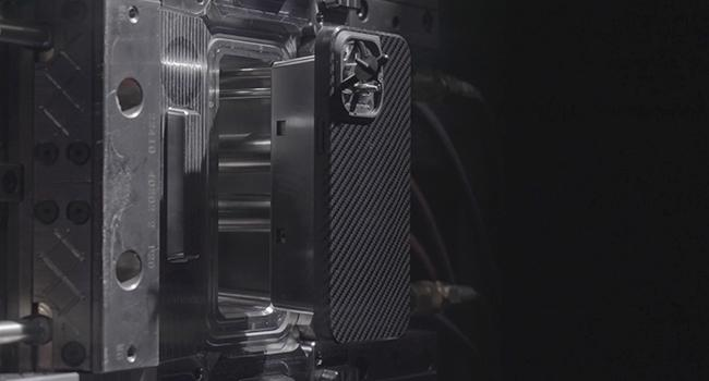为了让保护壳兼具芳纶纤维的韧性、手感,同时又有TPU塑胶的包裹性与弹性,PITAKA需要在保护壳上让芳纶纤维与TPU在立面无缝地结合在一起。