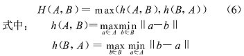 A 和 B 代表 2 个点集;‖°‖为 2 个点之间的欧式距离;H(A,B) 为 2 个边缘点集合之间的最大不匹配程度。