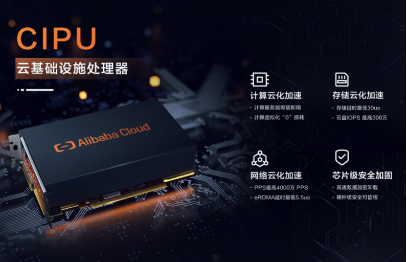 6 月 13 日,阿里云智能总裁张建锋在峰会上正式发布 CIPU(Cloud infrastructure Processing Units),这是为新型云数据中心设计的专用处理器,未来将替代 CPU 成为云计算的管控和加速中心。