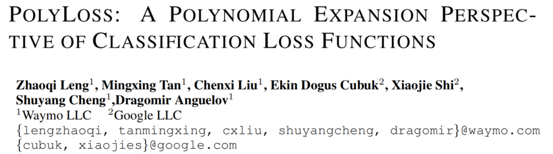 在本文中,作者提出了PolyLoss:一个新的框架来理解和设计损失函数。