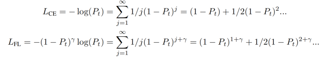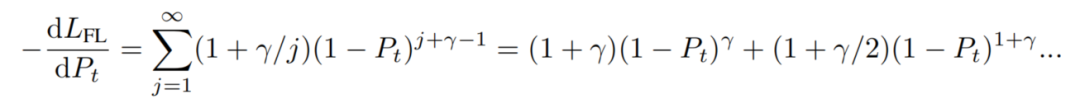 通过将所有多项式项的幂移动γ,第1项就变成 ,被γ抑制,以避免过拟合到(即 接近1)多数类。
