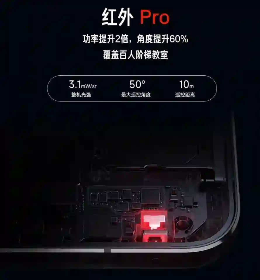 此外,Redmi K50 预装基于安卓 12 的 MIUI 13 系统,祖传的多功能 NFC、红外线传感器自然也没有缺席。Redmi 表示,K50 电竞版搭载的红外 Pro,功率提升了 2 倍,角度提升 60%,可以覆盖百人阶梯教室。