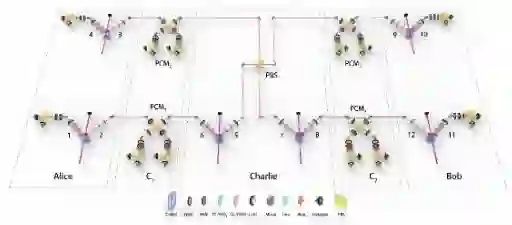 在该项工作中,研究团队首先对原始的全光量子中继方案进行改进,设计了实验可行的方案。在该方案中,研究团队使用了光子GHZ态和后选择贝尔测量来实现不同信道间光子对的任意连接,从而有效地提升量子信道中纠缠态的分发成功概率。然后,研究团队利用六个独立的参量下转换双光子纠缠源,在实验上成功地搭建了一个基于十二光子的全光量子中继器,测试了该量子中继器的各方面性能,并在实验上验证了其相比于纠缠交换方案的优势。实验结果显示,全光量子中继器可以有效提升量子态的传输速率,从而拓展量子通信的传输距离。