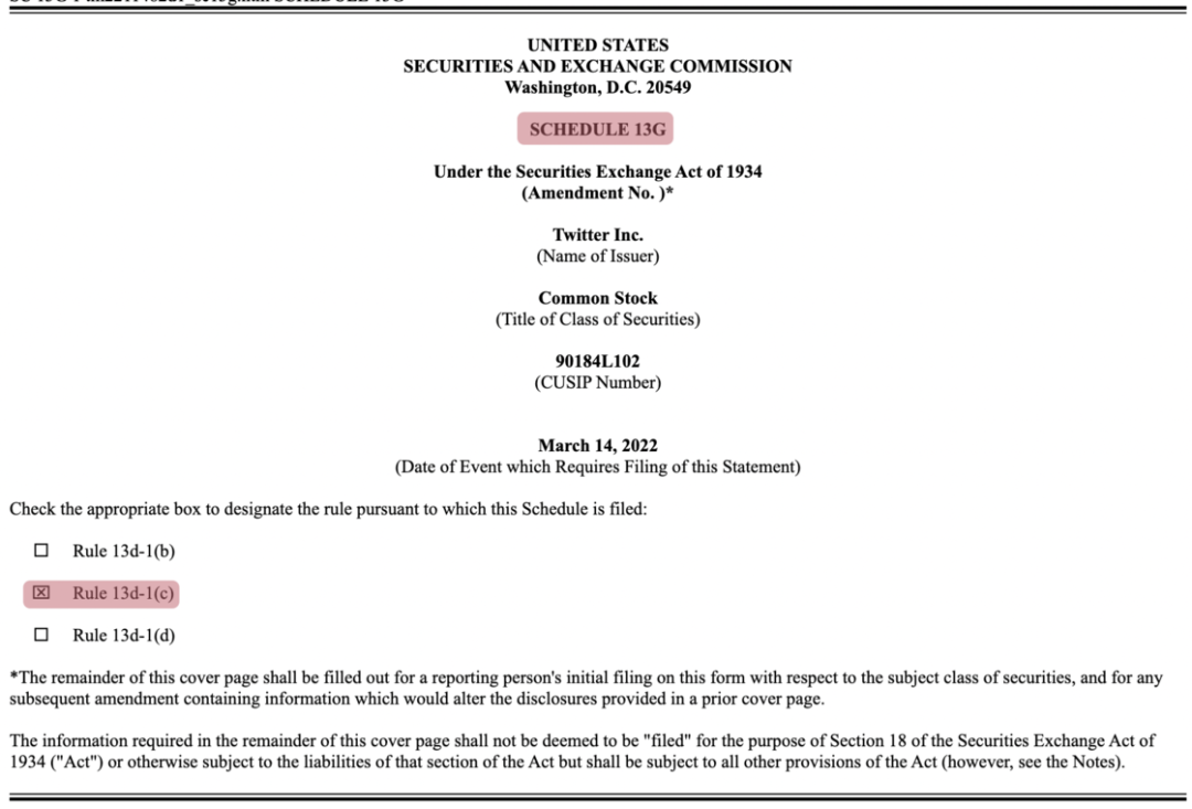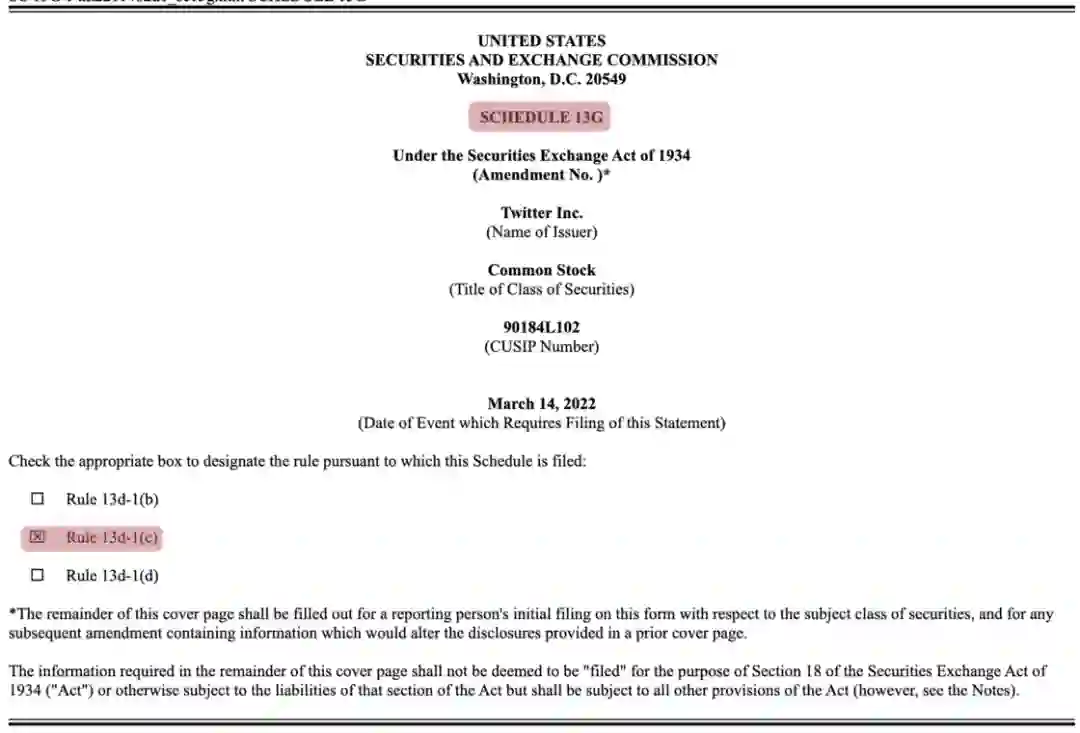 根据前述法律规定,提交 13G 的时限是收购后 10 天内。马斯克的收购发生于 3 月 14 日(封面页),而拖到 21 天后的 4 月 4 日才提交(第 5 页落款处),超时一倍都不止。