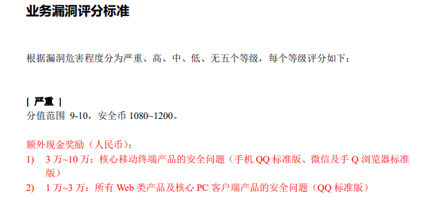 腾讯对于严重漏洞的奖励,其中 1 安全币等价于 5rmb