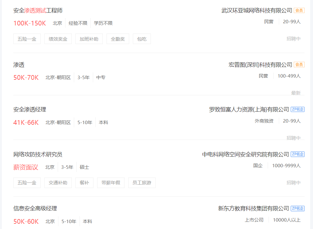 安全渗透测试、网络攻防、安全专家,这些都是网络安全方面的职位。