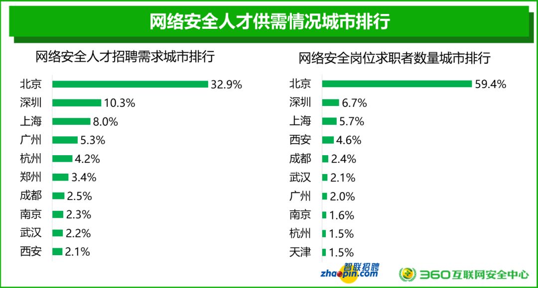 在地域分布方面,网络人才求职者数量城市排行中,北京位居第一,深圳第二,上海第三。