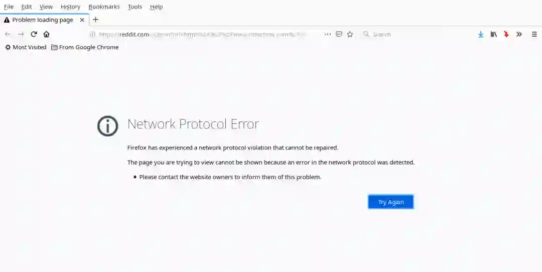 Firefox has experienced a network protocol violation that cannot be repaired.