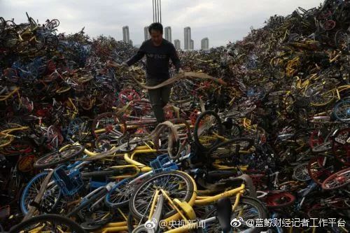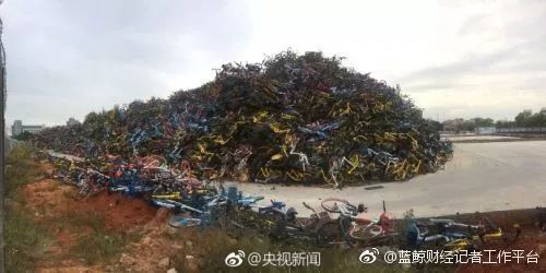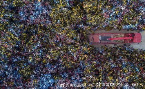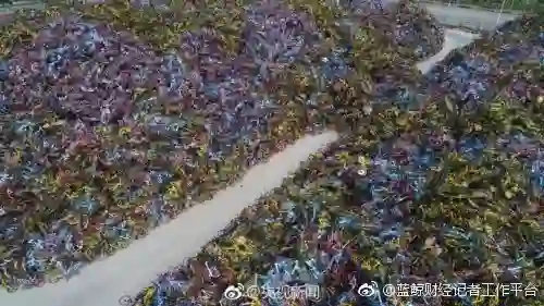 近期,在福建厦门一堆场,暂扣的共享单车堆成“小山”。拉车师傅说,每天要处理1000多辆,光这里就堆了近10万辆。