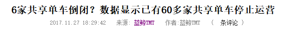 2017年6月13日,悟空单车打响共享单车倒闭第一枪。停止运营后,悟空单车将押金全部退还给了用户,总计约100余万元。