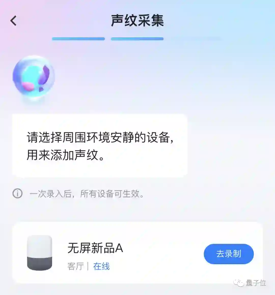 就像指纹一样,每个人的声音也有独特的声纹特征。就像给手机录入指纹一样,采集了3个不同距离下的声纹后就可以准确识别。