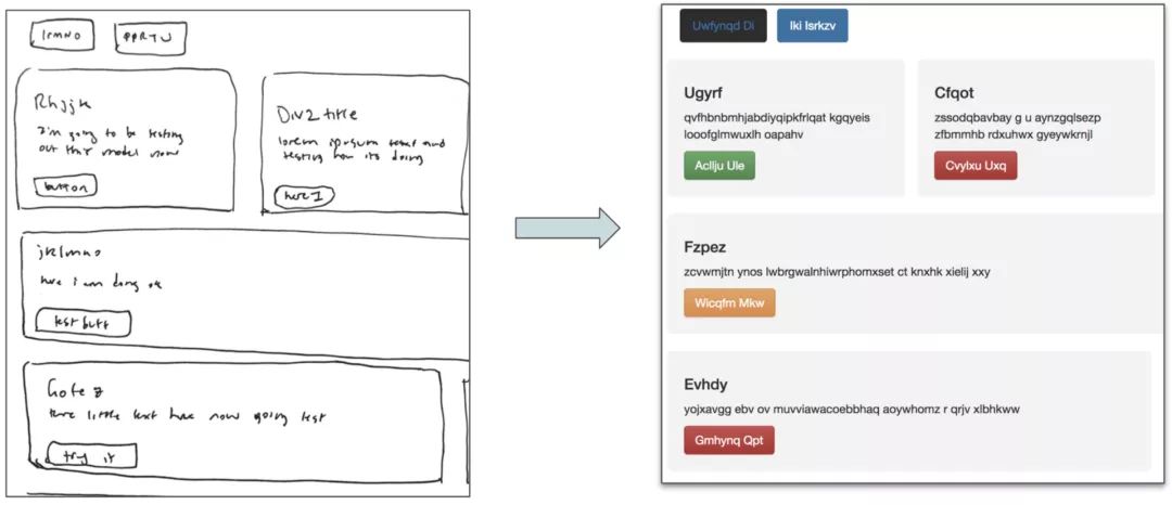 理想情况下,我们的模型能够使一个简单的手绘原型的网站设计,生成一个可运行的 HTML 网站: