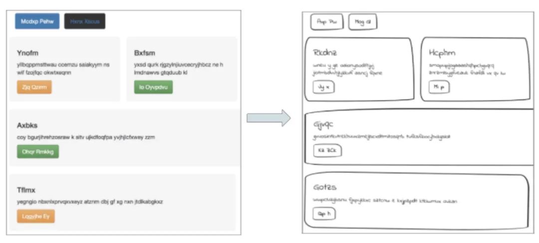 绘图也有很多变种,以致 CSS 技巧修改不能被完全捕获。在手绘草图数据中产生更多变种的一个很好的方法是使用生成的 Adversarial 网络来创建逼真的绘制网站图像。