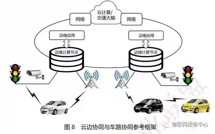在实际应用中,边缘计算可以与云计算配合,将大部分的计算负 载整合到道路边缘层,并且利用 5G、LTE-V 等通信手段与车辆进行 实时的信息交互。未来的道路边缘节点还将集成局部地图系统、交通信号信息、附近移动目标信息和多种传感器接口,为车辆提供协同决 策、事故预警、辅助驾驶等多种服务。